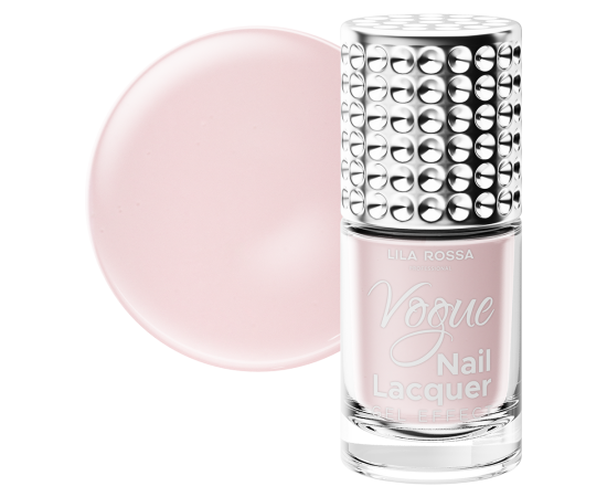 Vogue Nail Lacquer ima svilnato teksturo z maksimalno prekrivnostjo. Za popolno izravnavo in močno barvo je potrebno nanesti le dva sloja. Suši se na zraku, 60 sekund za vsako naneseno plast, kar vam daje elegantno manikuro