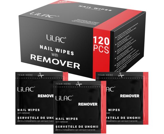 - Set vsebuje 120 vlažilnih robčkov, posamično pakiranih, s pomočjo katerih lahko odstranite gel lak za nohte